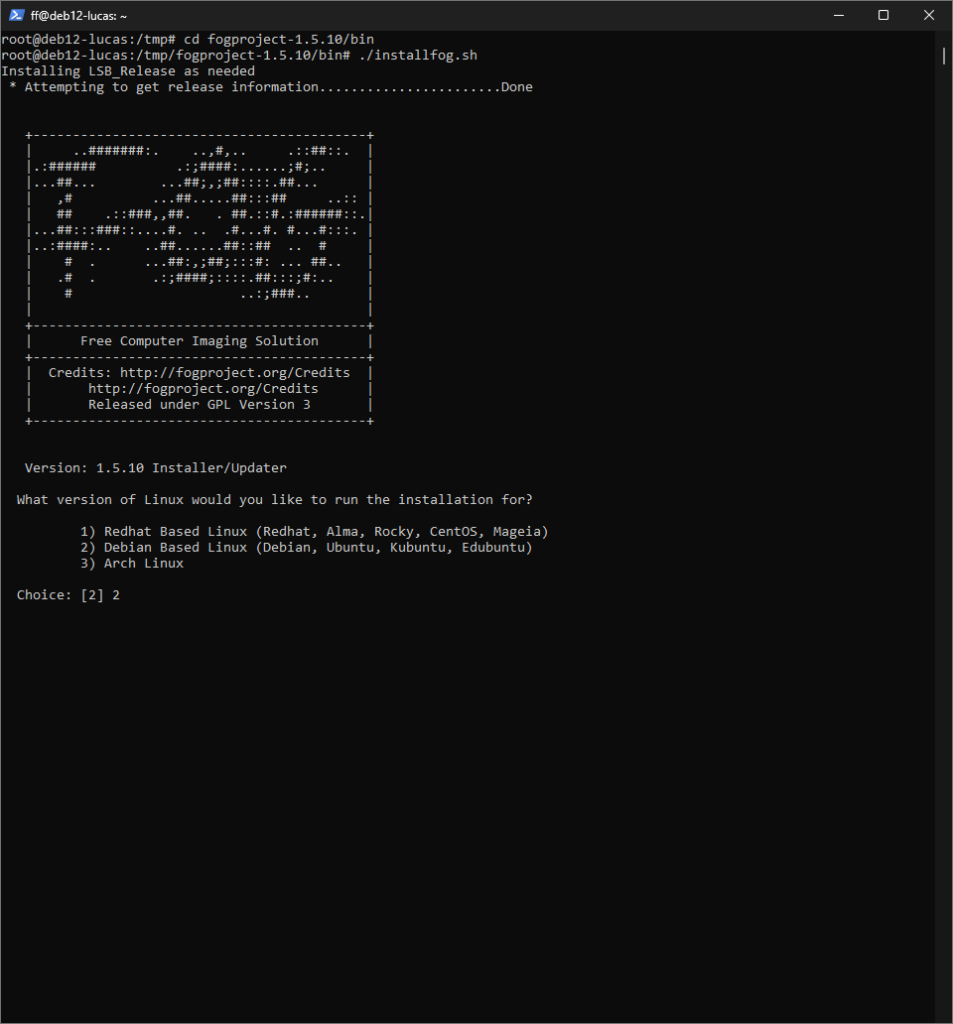 cd fogproject-1.5.10/binEt nous n’avons qu’à lancer le script d’installation :