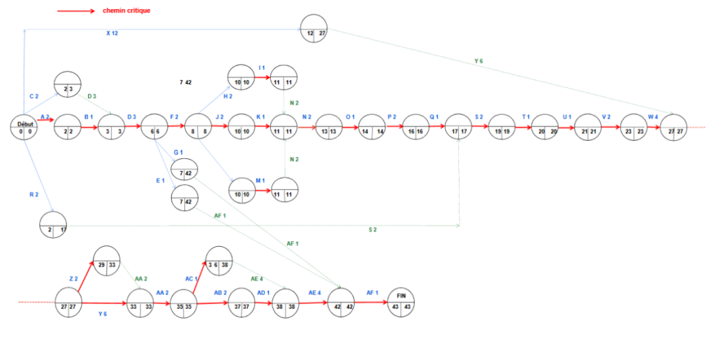– Durée prévue : 43 unités de temps (1unité = 15 minutes)