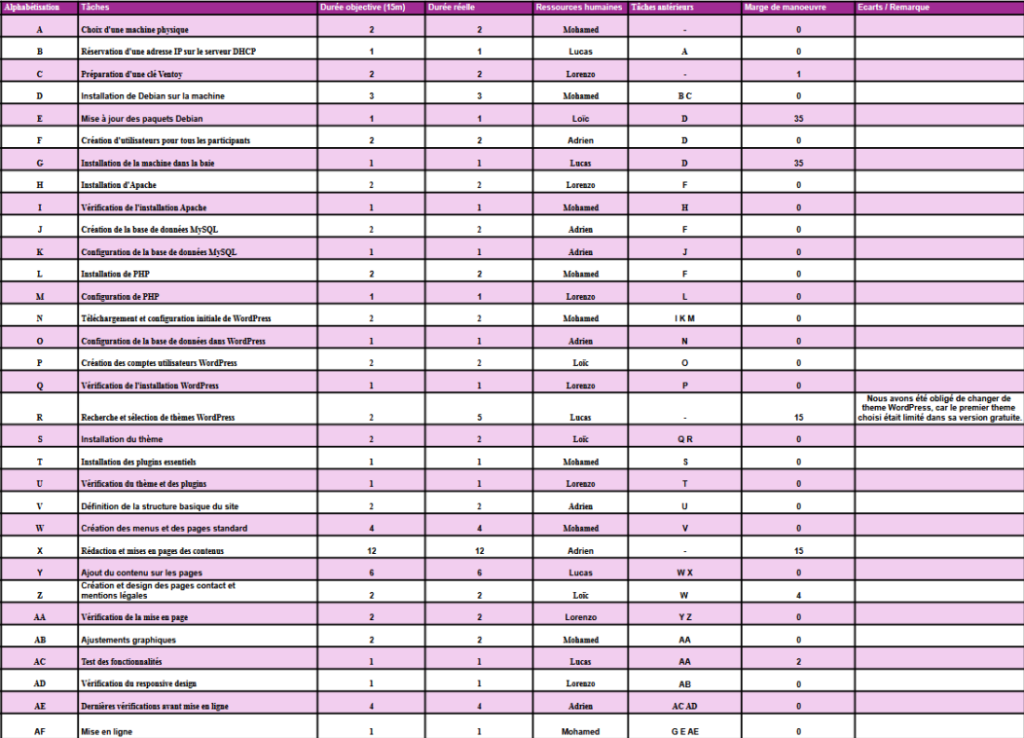 Puis, il fallait évaluer la durée de chaque tâche et attribuer des missions à chaque personne du groupe.
